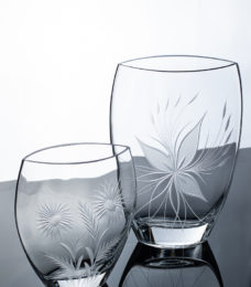 Vase en verre soufflé à la forme arrondie, orné d’un visage Massaï sablé à la main.