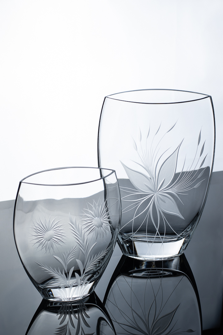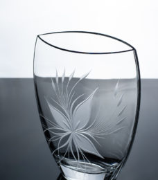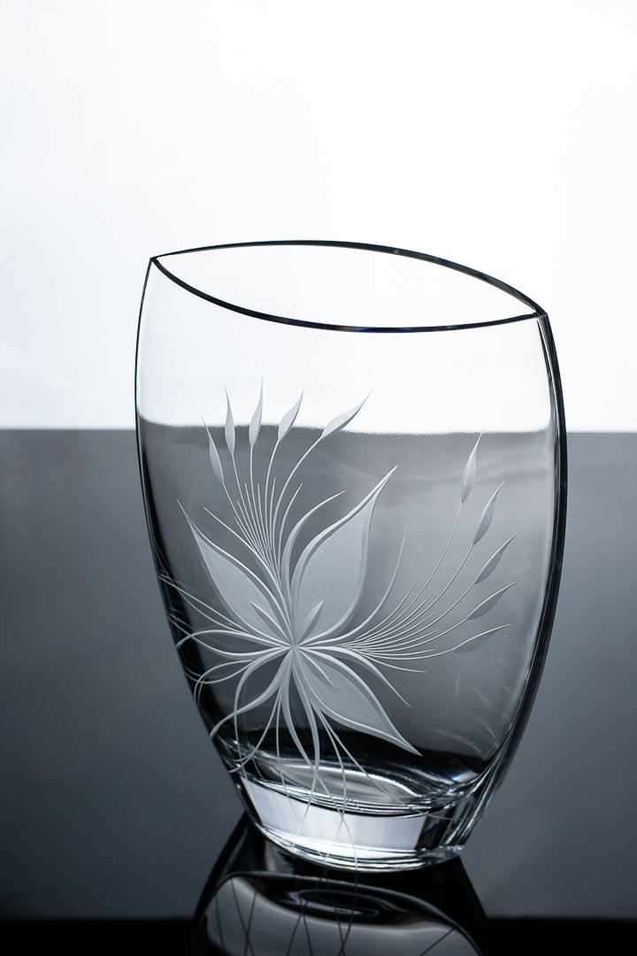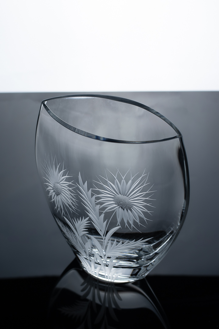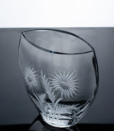Vase à la forme ovale légèrement aplatie.